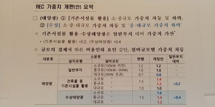 7월6일 REC가중치 개정안에 대한 공청회가 있다고 합니다.