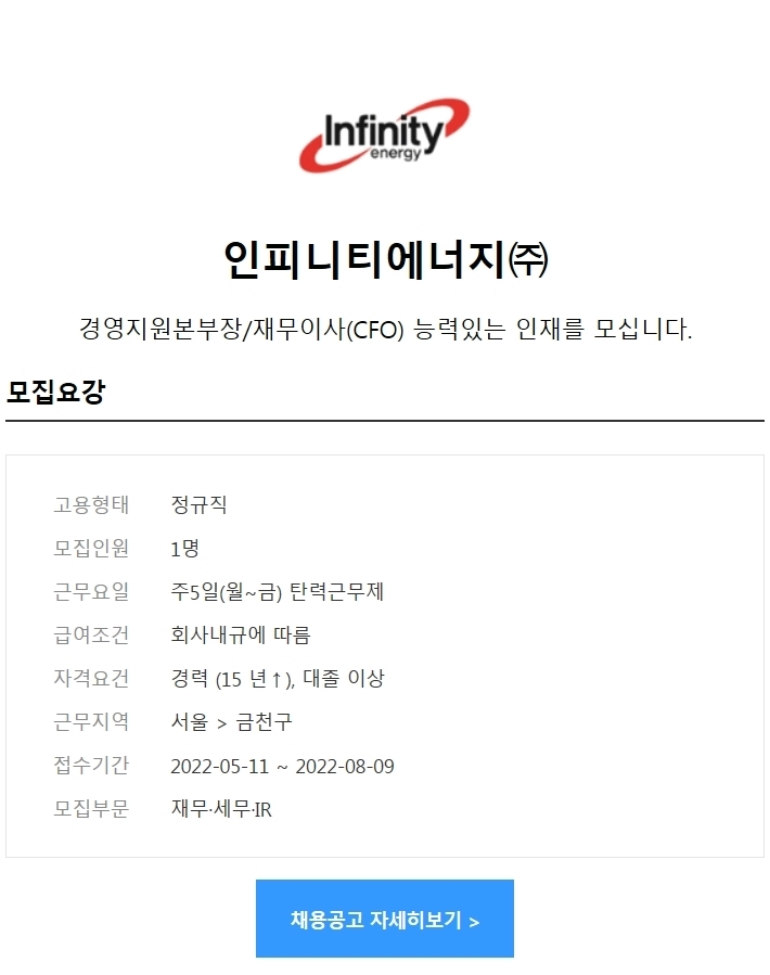 경영지원본부장/재무이사(CFO) 능력있는 인재를 모십니다