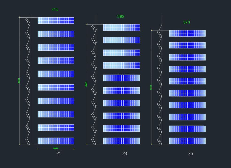 그렇기때문에 겨울철, 고도가 낮은 상태에서도 앞 모듈의 그림자가 뒷 모듈에 드리우지 않게 하기 위해서 '이격거리'가