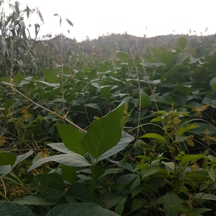 푸르른 밭, 콩이 벌써 이맘 큼이나 자랐어요,