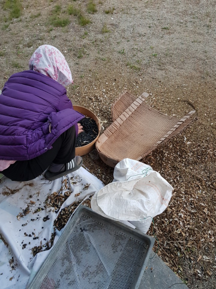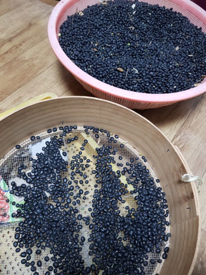 타작이 끝난 콩들은 이렇게 집에 가져와 티비를 보며 하나하나 골랐어요.