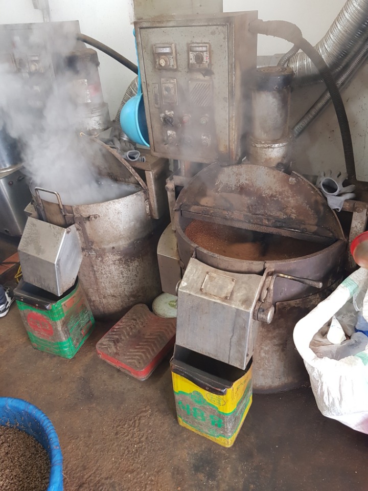 예를 들면 들깨 4~5키로에 참깨 1키로 내지 2키로 따로 따로 볶아 같이 기름을 짜주면 맛이 더 월등히 좋아졌어요.