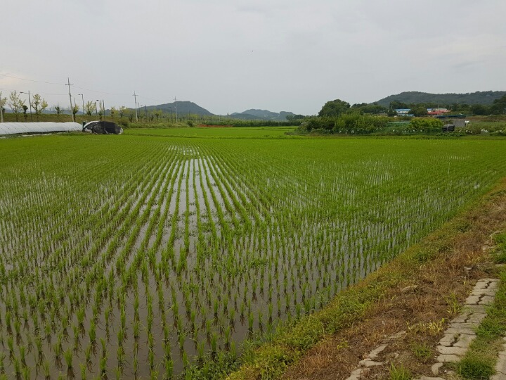 막 모내기가 끝난 논 전경이에요.