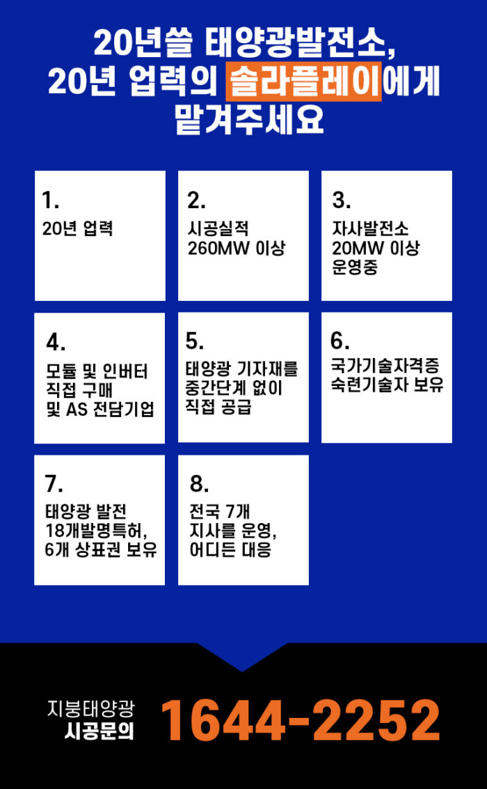 20년 업력의 솔라플레이 에게 맡겨주세요
