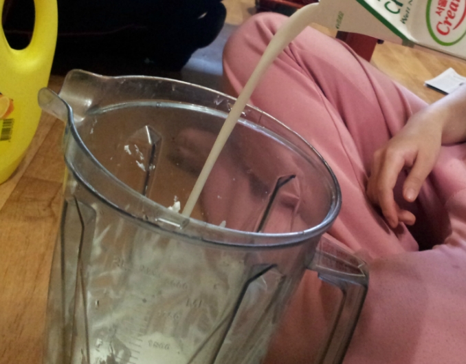 1. 먼저 생크림에 설탕을 조금 넣고 믹서기에 갈아서 생크림을 만들어요