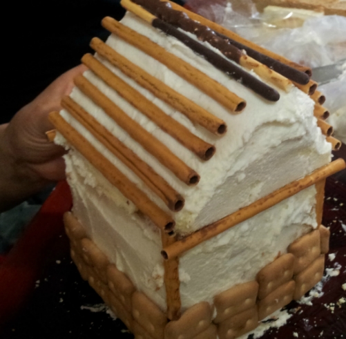 4. 지붕위에 빼빼로도 붙이고 이것 저것 붙이고 나면 집이 완성 되요