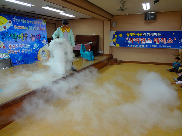 [과학공연 사진]초등학교과학교육으로 즐거운 과학매직쇼공연이 도서관주최로 신나게 재미있게 잘 진행되었어요 극단햇빛 사이언스 매직쇼 "과학아 놀자" 과학쇼
