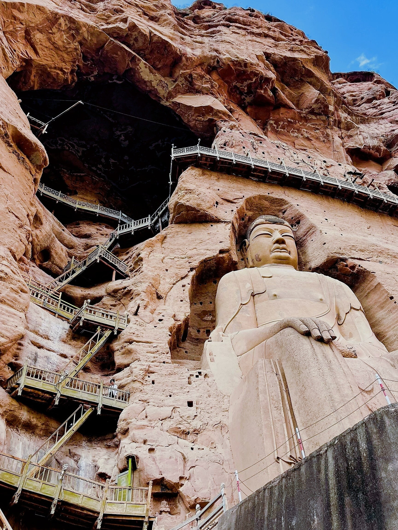 수이모 단샤산(水墨丹霞:수묵단하) 란주 수이모 단샤산은 주로 홍산만 지형으로 이루어져 있으며 단샤 절벽, 고립된 봉우리, 한적한 계곡과 같은 독특한 경관을 자랑합니다. 지질학적으로 백악기부터 신생대까지 발달했으며, 히말라야 조산 운동 시기에 형성된 붉은 암석층에 보존된 붉은 사암이 지각에 의해 융기된 후 오랜 기간 동안 풍화 및 침식되어 형성된 경이로운 지형입니다. 약 1억 5천만 년 전에 형성된 것으로 추정됩니다. 가장 최근에 발견되어 개발된 지역으로 코로나가 한창이던 2021년에 개발을 시작하였고 2023년 12월에 수이모 단샤산의 내부 도로 순환로가 개통되어 2024년 부터 차량 통행이 가능해져서 칠채산에 버금가는 새로운 관광지로 발돋움 하였습니다. 유가협 병령사로 가기 위해서는 유가협에서 모타보트를 타고 한 시간 정도 가야한다. 주변 풍광이 매우 아름답다. 병령사 석굴 炳灵寺石窟 모타보트로 한시간을 달리며 유가협의 절경을 감상하면 병령사에 도착한다. 세계문화유산인 병령사 석굴은 4층으로 이루어져 있으며, 183개의 석굴과 감실, 694개의 석조 조각상, 82개의 토기 조각상, 그리고 900제곱미터 면적의 벽화가 있다. 병령사 석굴은 길이 약 200미터, 높이 약 60미터의 절벽면에 분포되어 있다. 병령사석굴은 실크로드 유적으로 유네스코 세계문화유산에 등재되었다. 황하석림 200만년 전에 형성된 지형으로 지각운동과 풍화, 침식작용으로 변형된 지역이다. 칭하이-티베트 고원의 융기 이후, 고대 지리적 환경의 변화를 명확하게 보여주고 있다. 감숙성 박물관 甘肃省博物馆 |