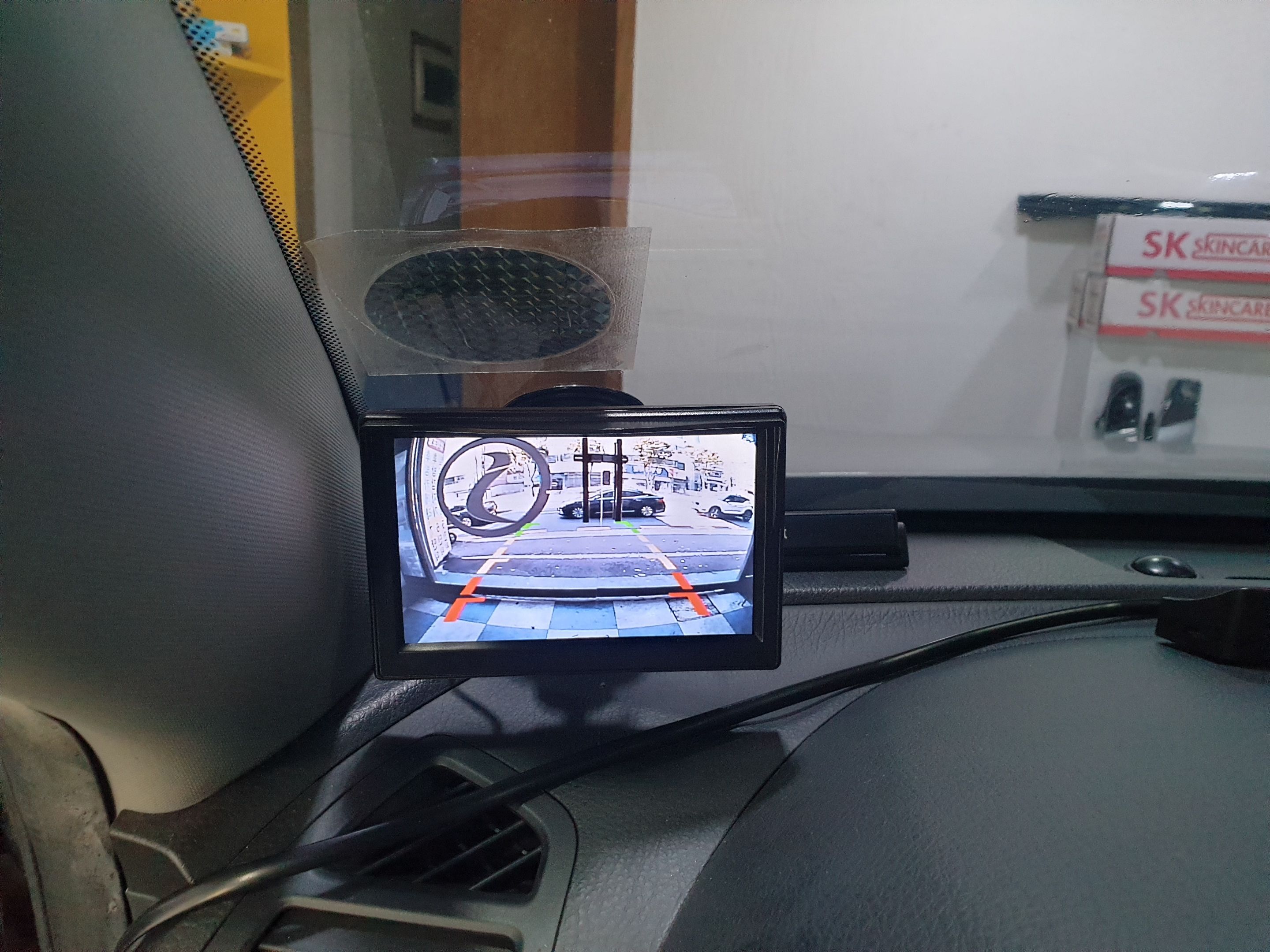 5인치 후방모니터는 유리에 부착또는 데시보드에 부착이 가능하며