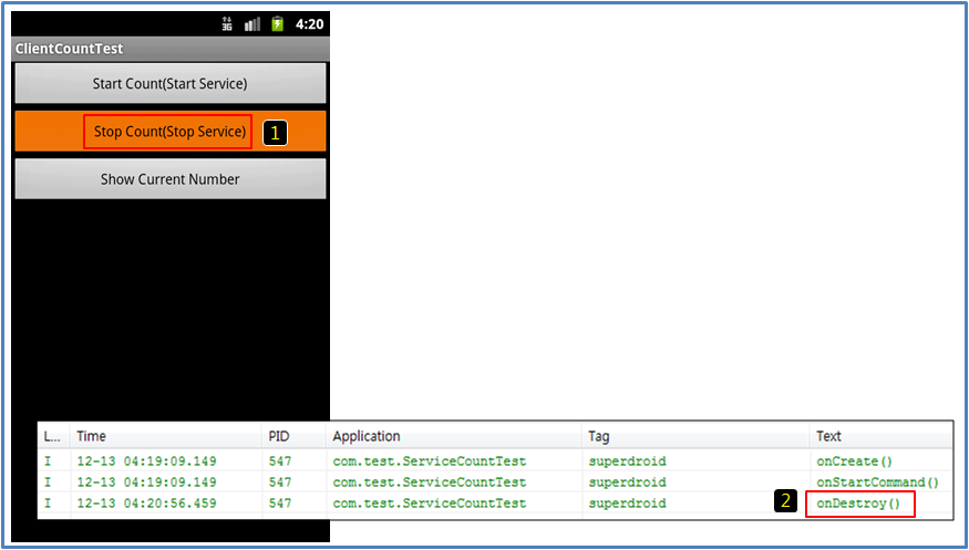 2번은 "Stop Count"버튼을 눌렀을때 동작중인 서비스를 중단시켜 준다.
