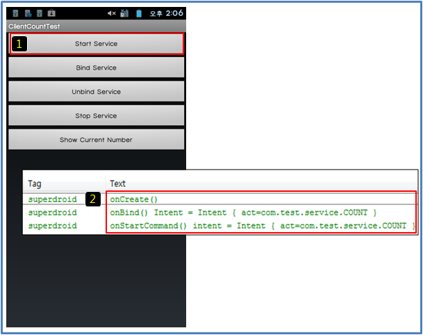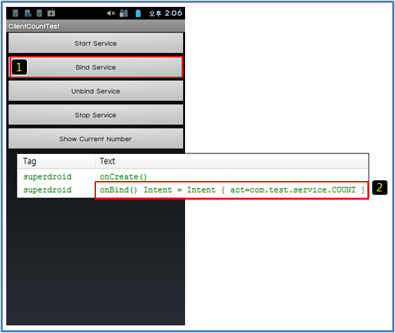 2번 로그를 보면 0nStartCommand 함수가 호출되지 않고 바로 0nBind가 호출됨을 알수 있다.