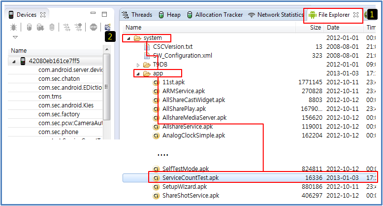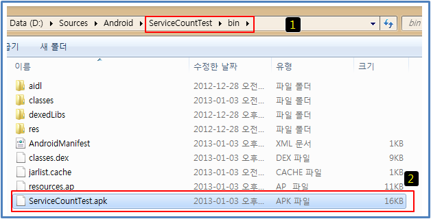 (물론 adb shell ls /system/app/ServiceCountTest.apk 라고 치면 볼 수 있지만 말이다.)