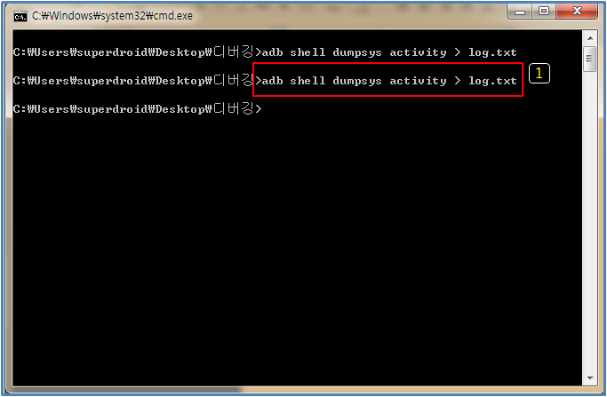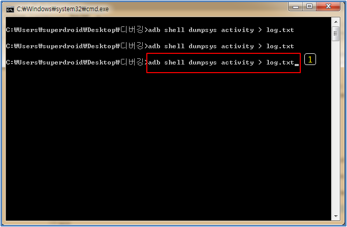 위와 같이 실행하면 log.txt 라는 파일명으로 내용이 저장된다.