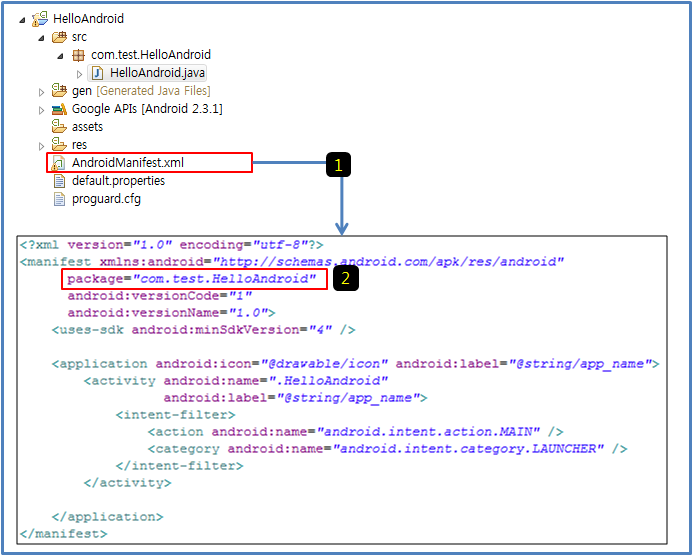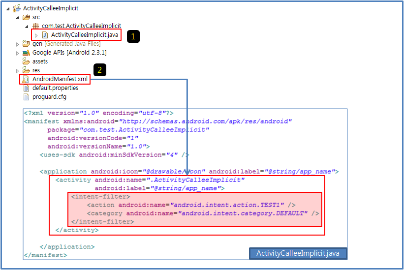 이 중 <action android:name="android.intent.action.TEST1"> 부분을 기억하자.