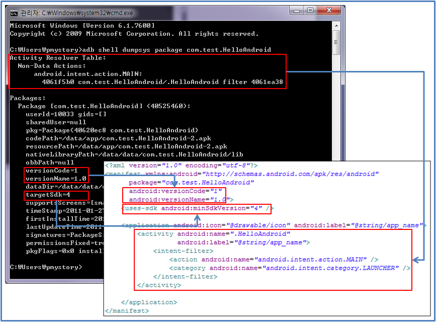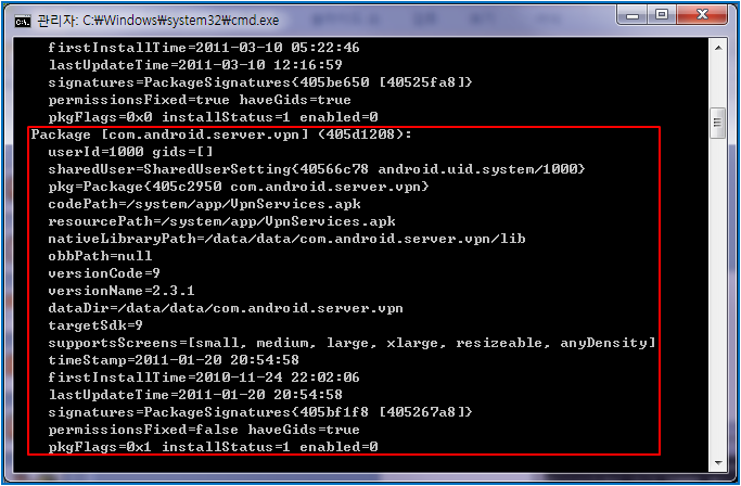 >> adb shell dumpsys package > 파일명