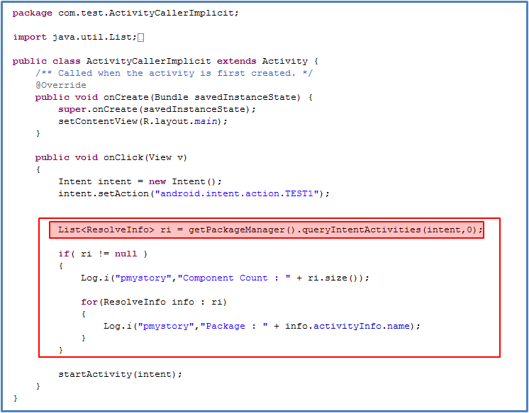 물론 queryIntentActivities()는 ActivityManager에서 뿐만 아니라,