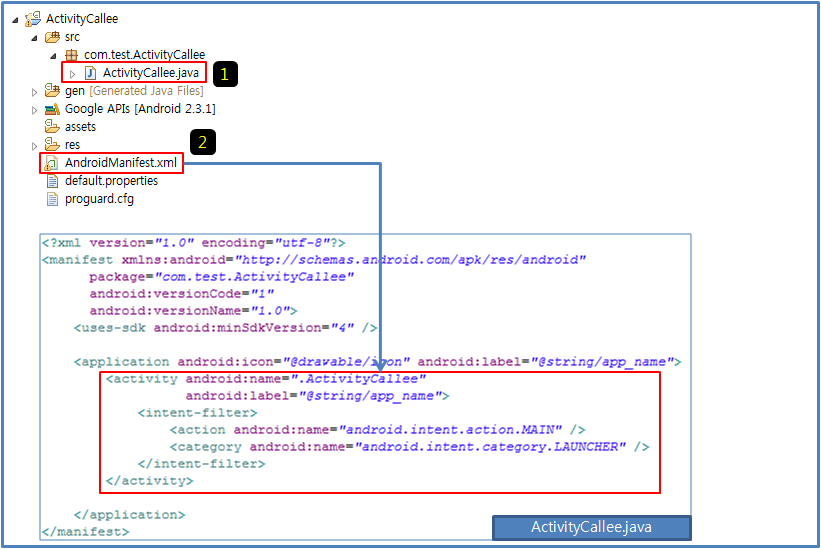 해당 Component의 패키지 명은 "com.test.ActivityCallee" 이다.