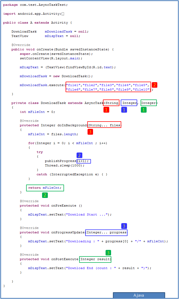 이렇게 제너릭스를 사용하면 AsyncTask 내부에서 사용될 Type을