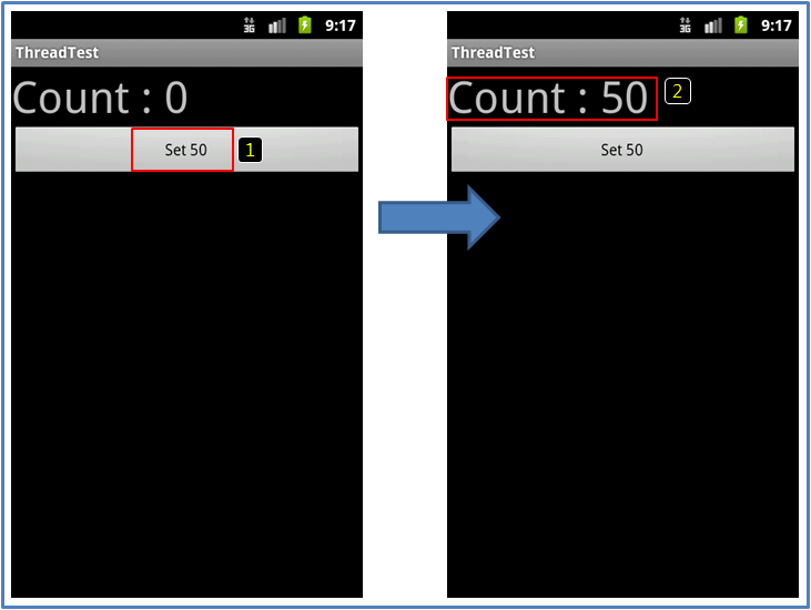 즉 버튼을 클릭하면 아래의 1번과 같이 "Count : 50" 이라고 화면에 다시 그릴 것이다.