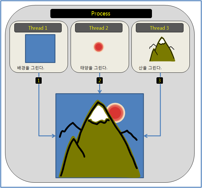 하나의 Process에서는 하나의 Thread가 기본적으로 동작한다.