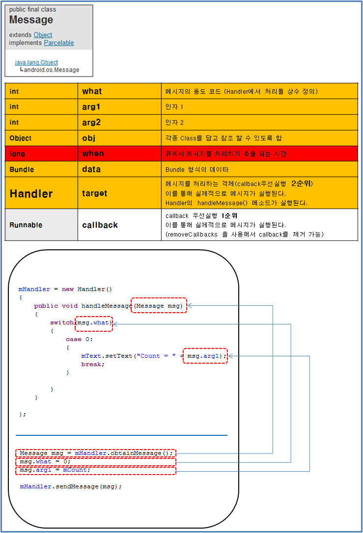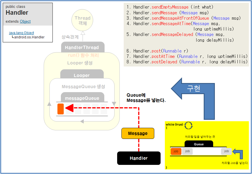 그 이유는 thread + handler 를 좀더 편하게 사용할 수 있도록 나온것이 AsyncTask이기 때문입니다.