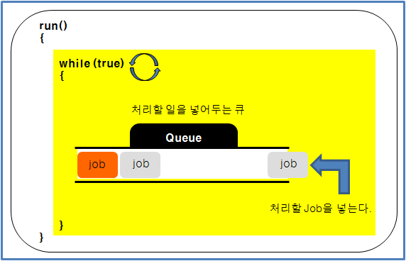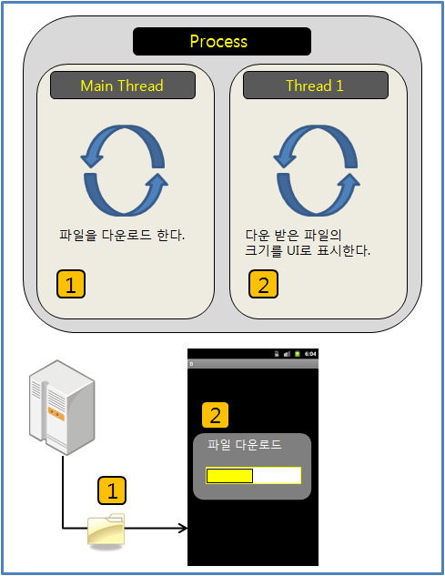 표시하고자 하는 경우 두가지의 Thread가 필요한 것이다.