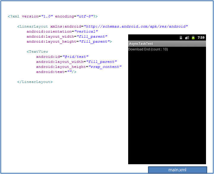 화면에 다운로드의 진행정도를 표시하는 TextView를 Layout에 추가하였다.