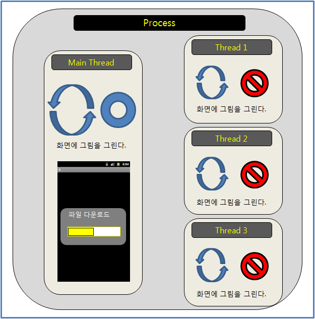 Main Thread에서 그림을 그리고 다른 Thread에서는 그것을 허용하지 않는다.