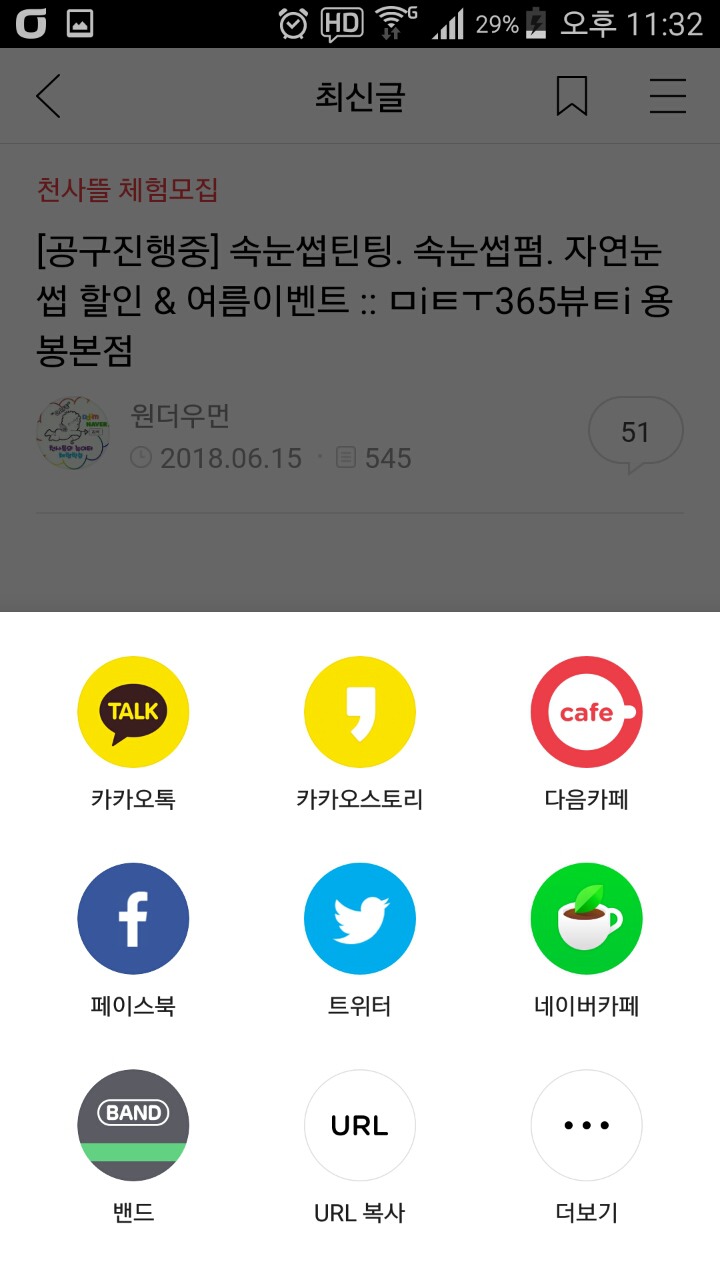 다른 sns로 공유하기가 있습니다