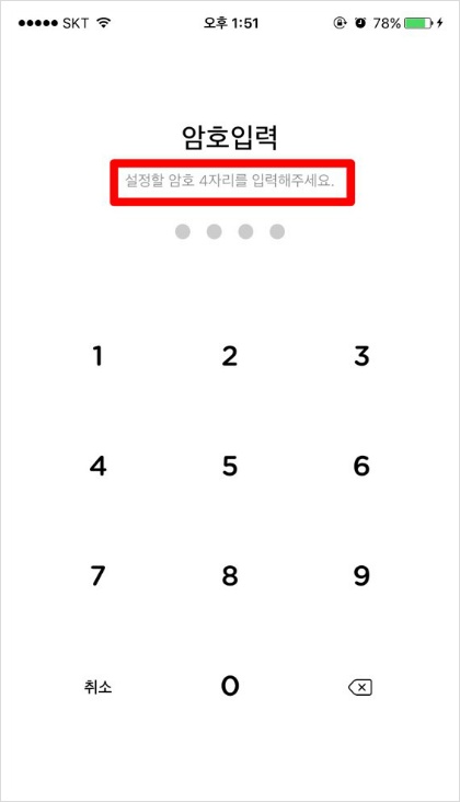 4) 암호입력 하는 창이 뜨면, 원하는 암호를 입력해주세요