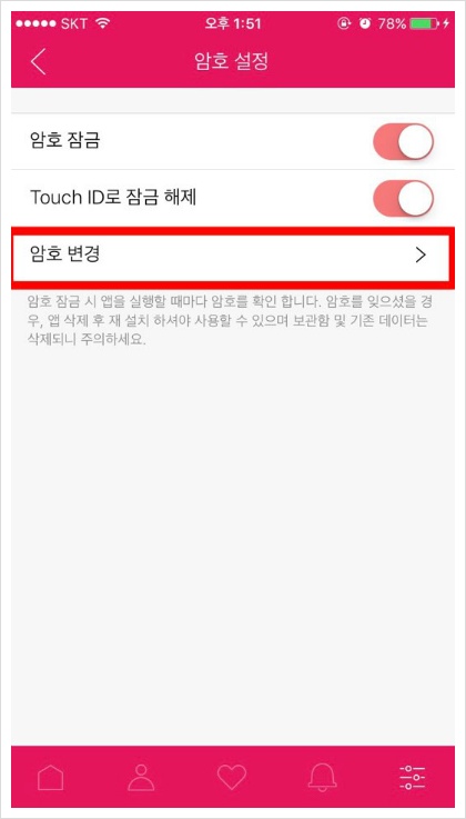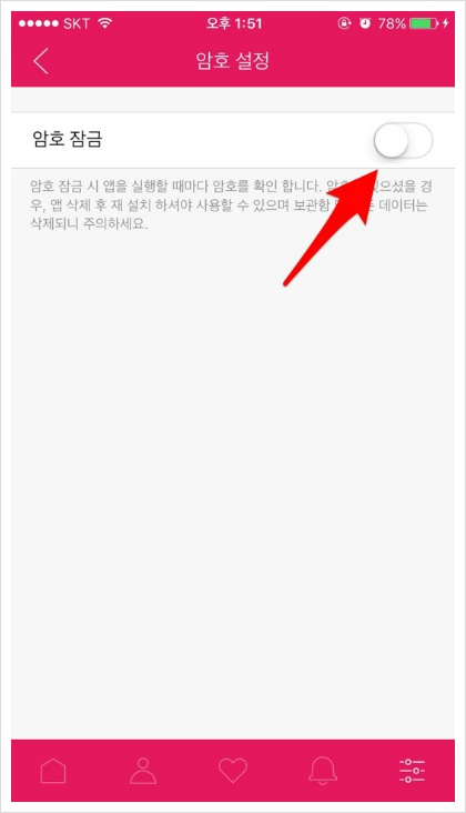 6) 짠! 그럼 이렇게 암호잠금 버튼이