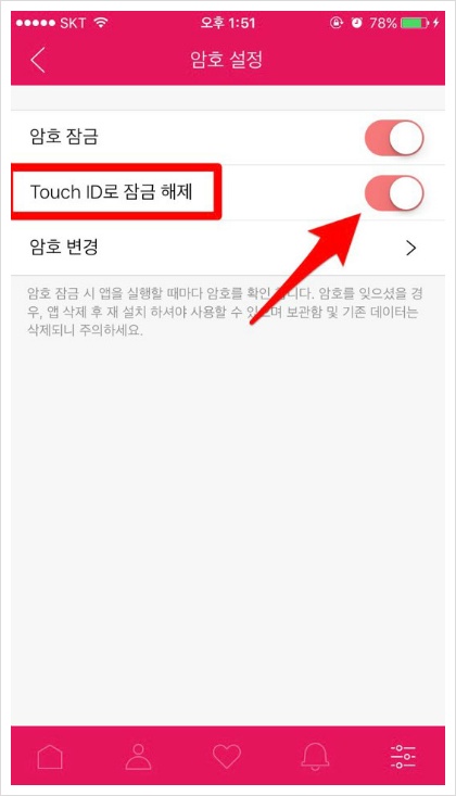 [Touch ID로 잠금 해제] 버튼을 눌러주세요)