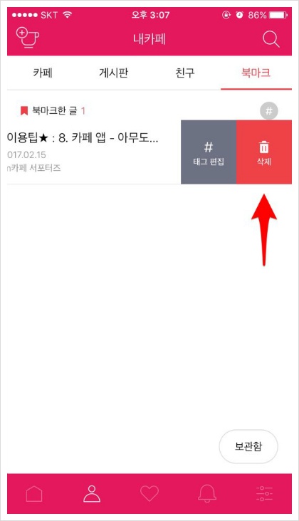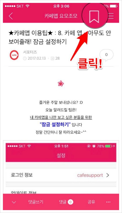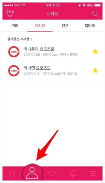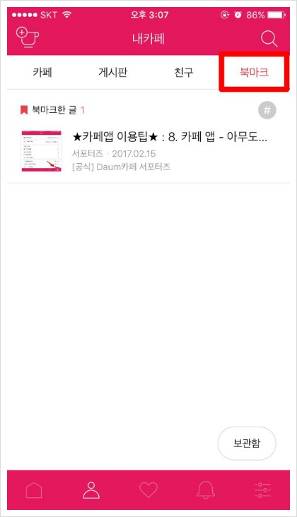 [내카페] -> [북마크] 탭을 누르면!