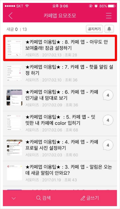 저는 [카페앱 요모조모] 게시판으로 가볼게요~