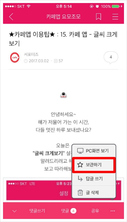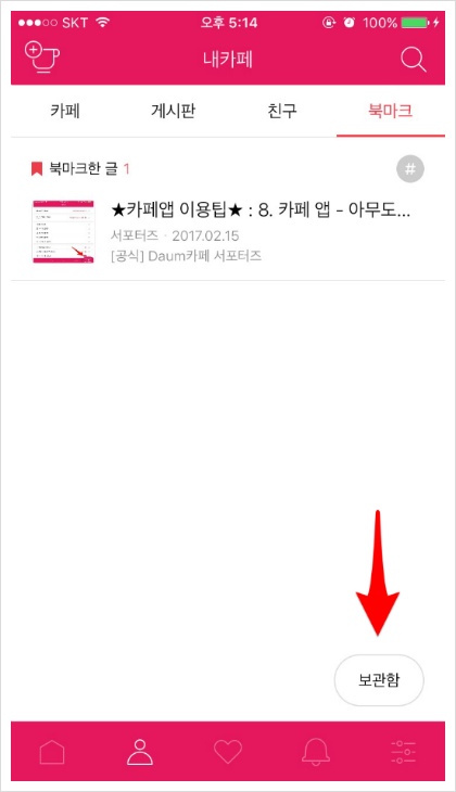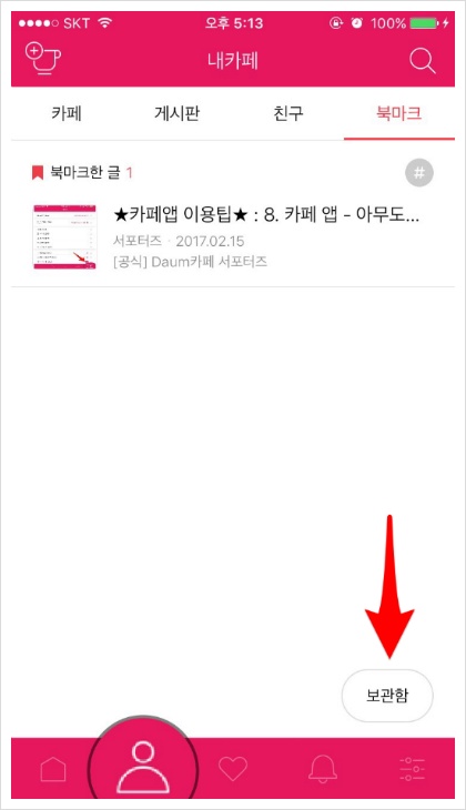 오른쪽 하단에 [보관함] 버튼 클릭!