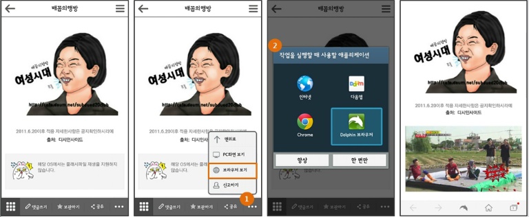 2) '브라우저 보기'를 선택해주세요. (해당 기능은 카페 안드로이드앱 최신버전 v2.2.0 이상을 설치하셔야 합니다.)
