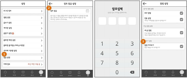 암호잠금, 알림 미리보기 설정 기능을 이용해보세요.