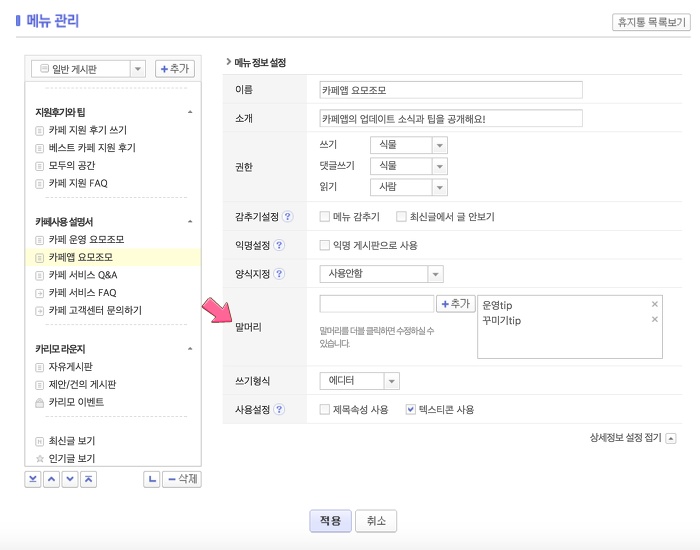 그럼 말머리 추가하러 가볼까요?