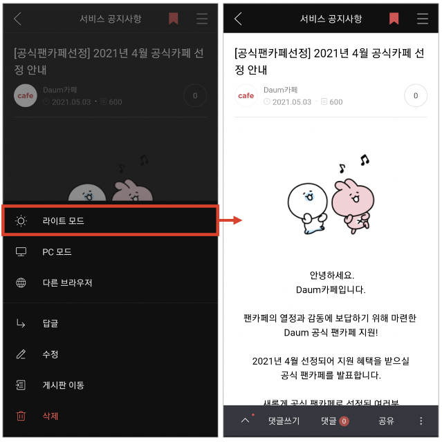 더 편안하게 다음카페를 즐기실 수 있습니다.
