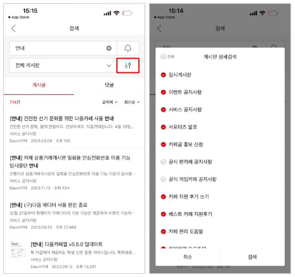 위 기능은 다음카페앱 최신 v5.9.0부터 제공됩니다.
