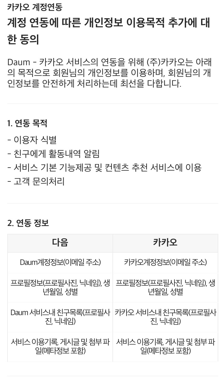 계정연동을 통해 다음-카카오 서비스를 연결하는