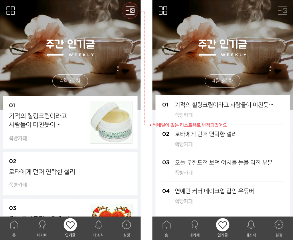 이번 카페앱 2.7.0 에서 새로워진 인기글메뉴 관련하여 전달 드립니다.