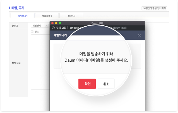 회원은 대표메일이 아닌 다음 메일로 수신합니다.