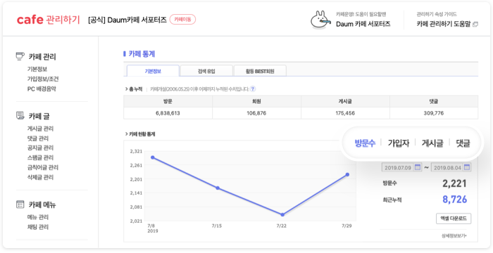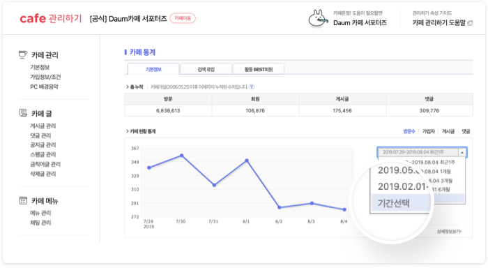 카페 관리 > 통계 카페 현황 통계에서