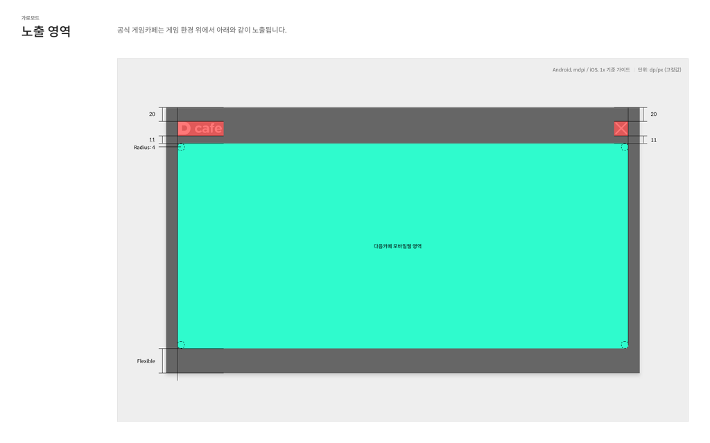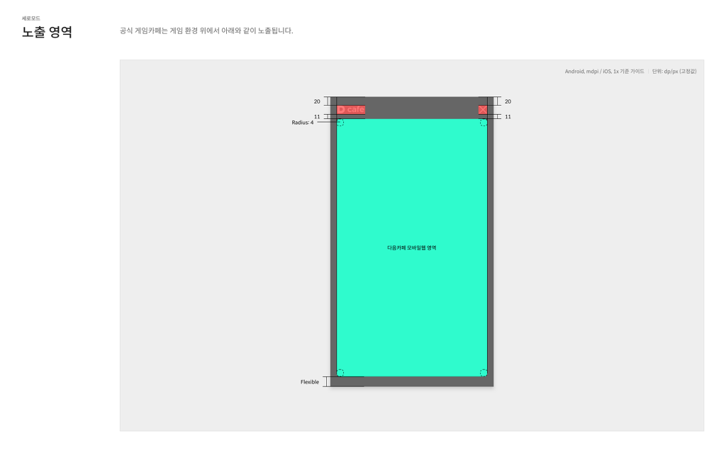 반드시 게임앱에 개발, 디자인 가이드를 모두 적용한 후 모바일 게임관리에서 전용게임뷰를 적용해주세요.