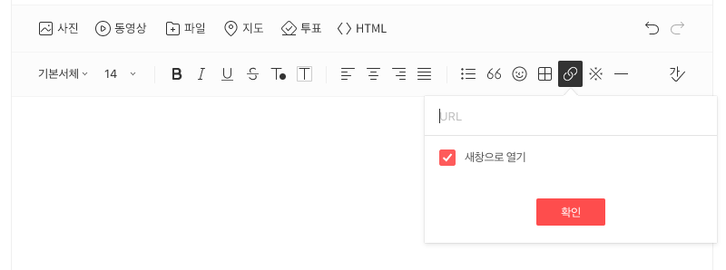 링크 직접 삽입으로 입력하면 본문에 주소가 직접 입력됩니다.