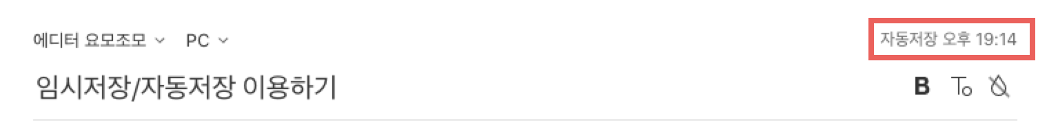 발행 전 게시물의 보관이 필요할 땐 임시저장 버튼을 눌러 저장할 수 있습니다.
