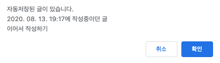 '확인'을 누르면 이전에 작성중이던 내용을 불러옵니다.