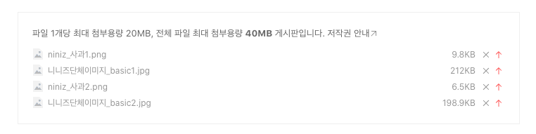 단, IE11은 에디터의 내부적인 문제로 50개까지만 올릴 수 있습니다. - 이미지 용량은 게시글 첨부 파일 제한 용량에 포함되지 않습니다.