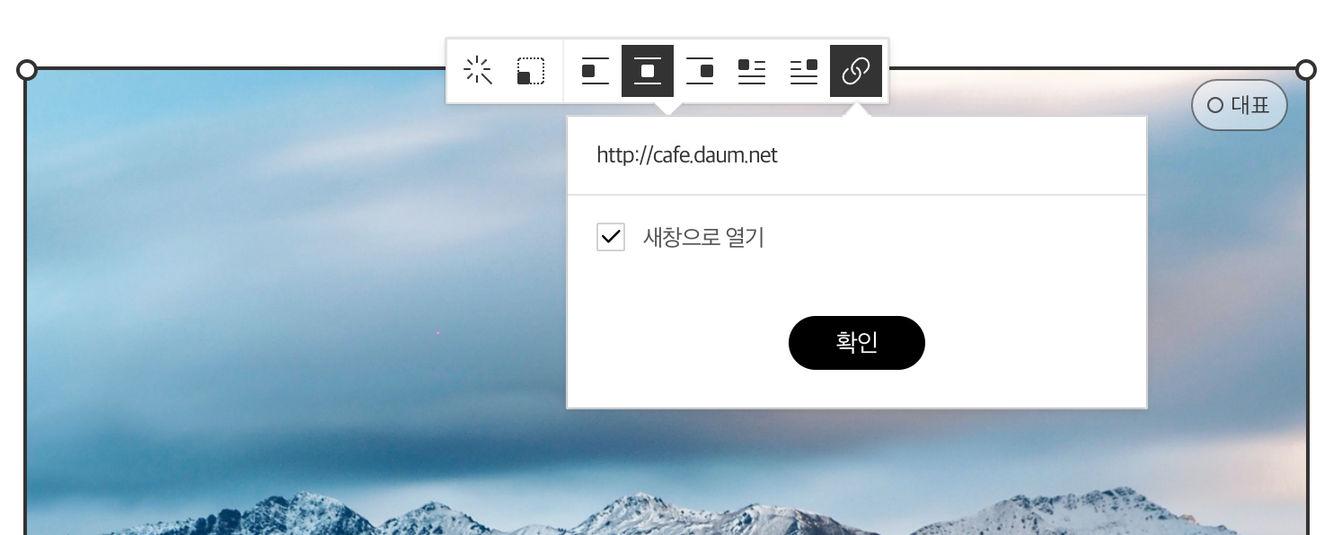 이미지 전체에 링크를 추가할 수 있으며, 새창으로 열기/현재창으로 열기를 선택할 수도 있습니다.